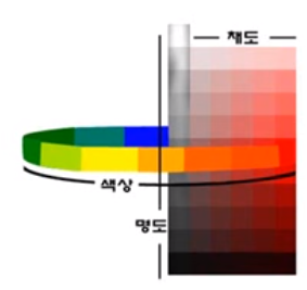 - 채도 : 색의 선명도. 다른색이나 무채색을 혼합하면 채도는 낮아짐
